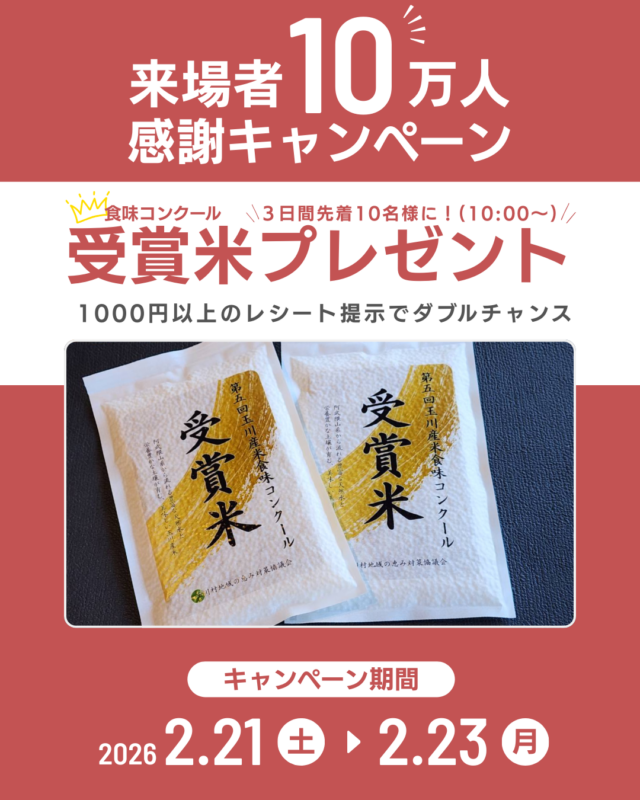 日頃のご愛顧に感謝を込めて、乙な駅たまかわでは来場者10万人達成を記念し、キャンペーンとイベントを同日開催いたします。